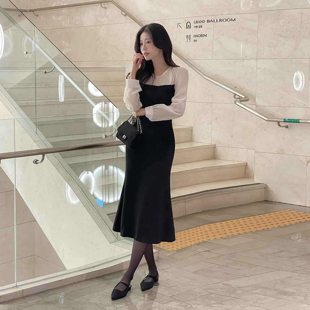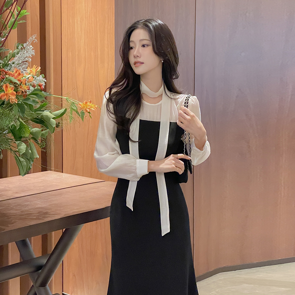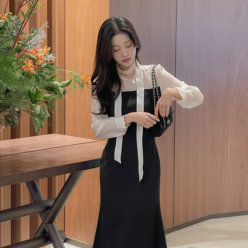 로에 分层 配色 连衣裙(+领带)(美人鱼/H字型ver)