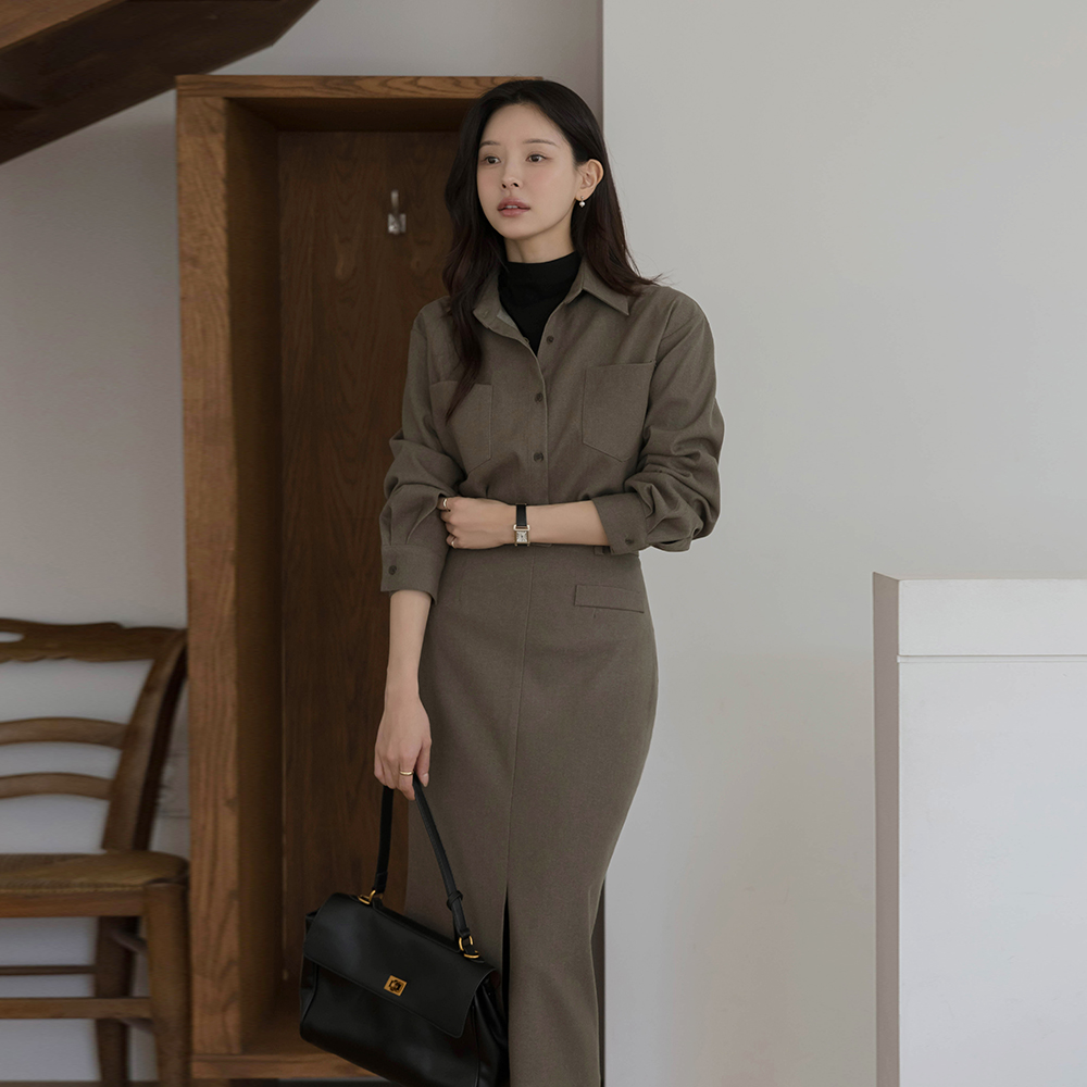 羊毛 H字型 开衩 裙子(+腰带)
