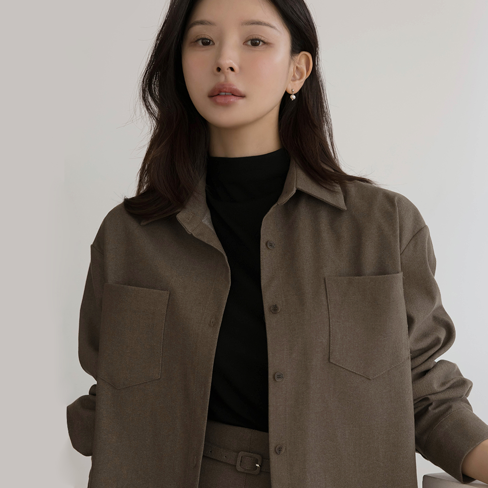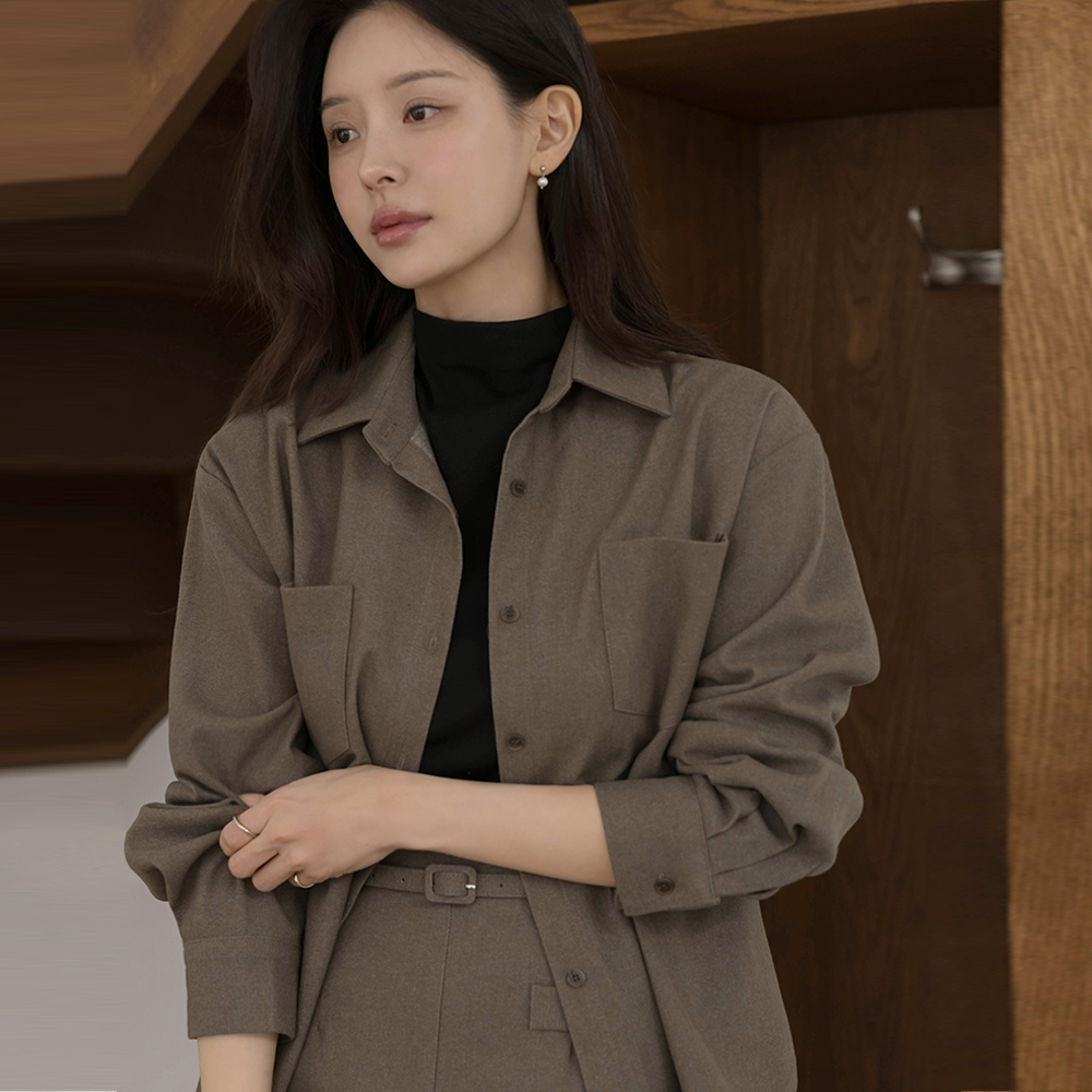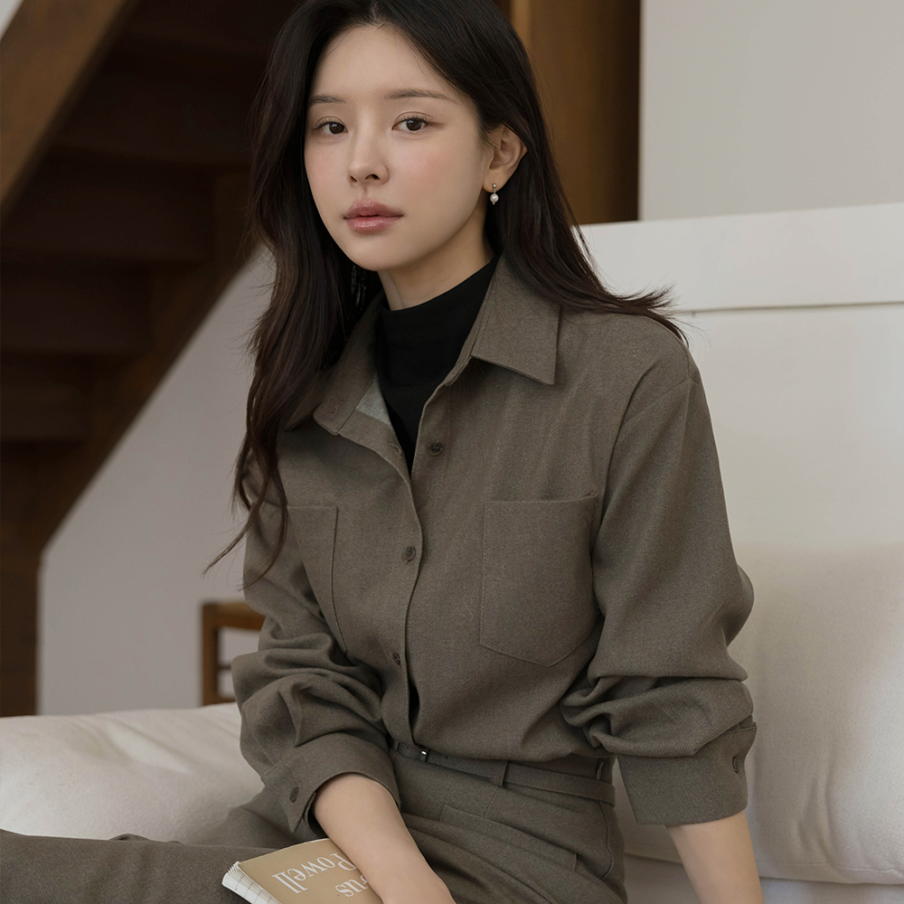 羊毛 双口袋 宽松 衬衫