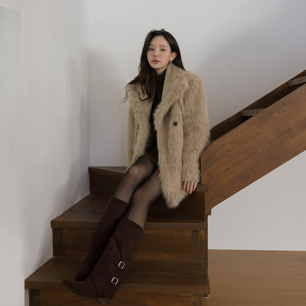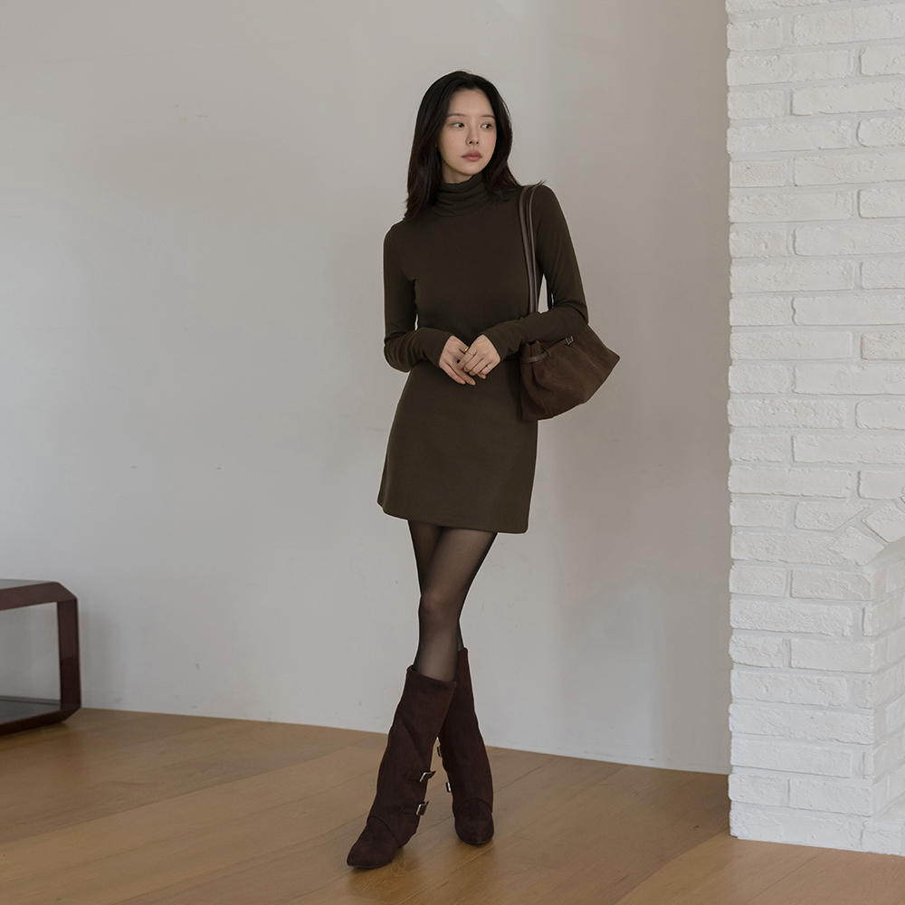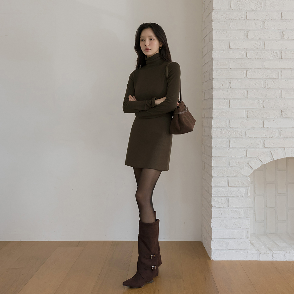 船形领 后开叉 羊毛 针织衫 长款 连衣裙