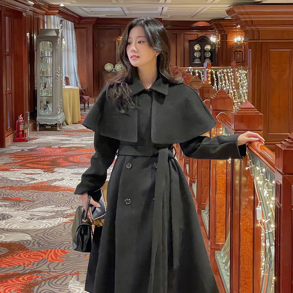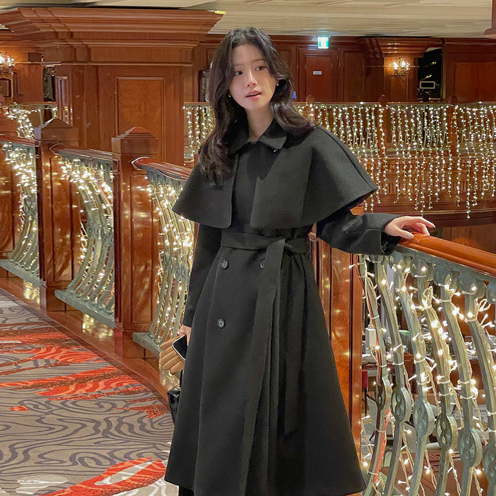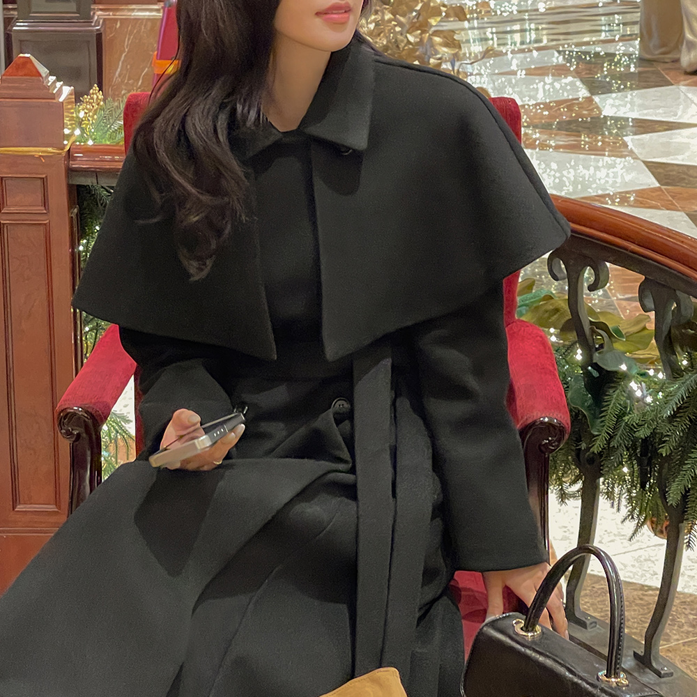 双排扣 长款大衣(+腰带,披肩)