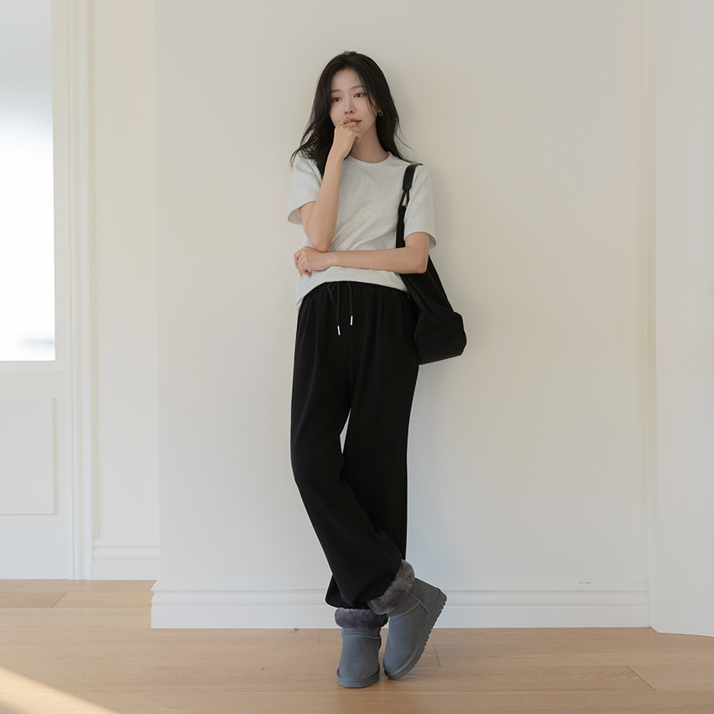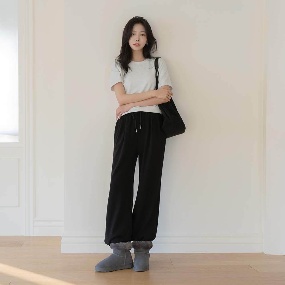 稍厚的 拉绒 宽绰 松紧带 裤子