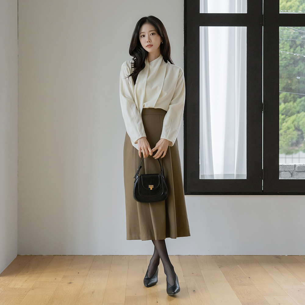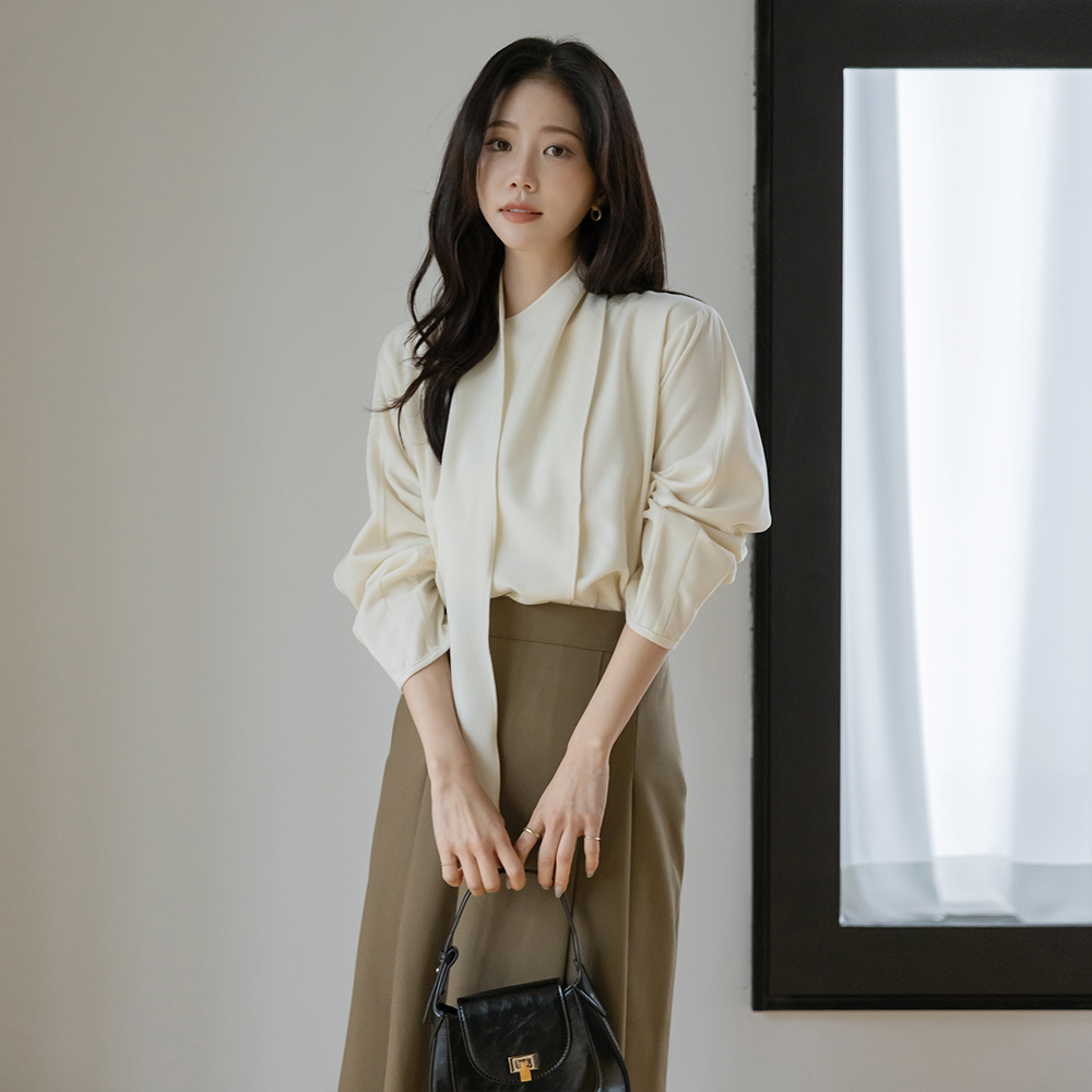 围巾领 겉기모 羊毛 罩衫