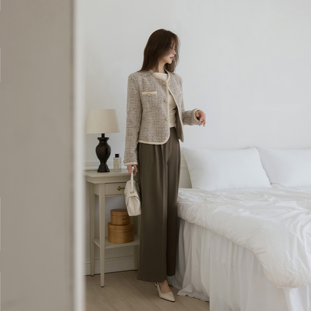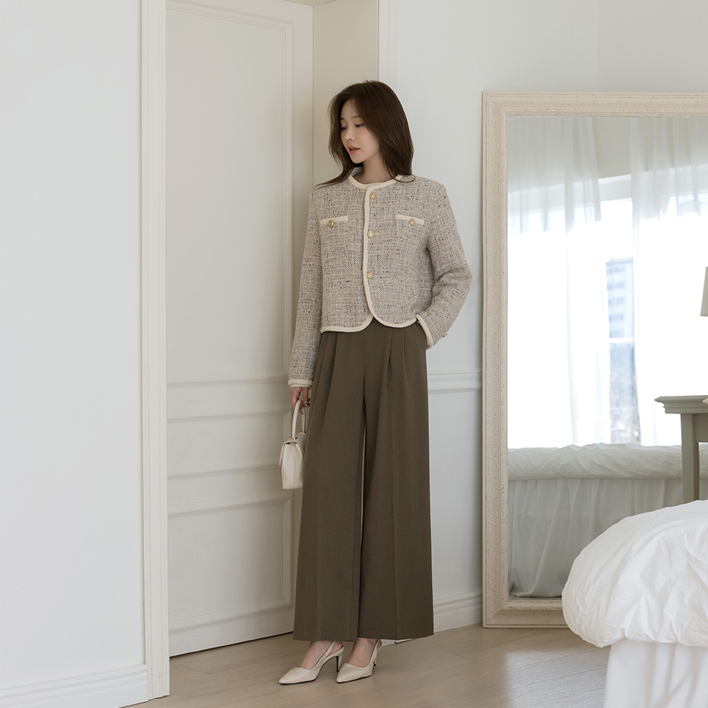 阿里尔 细褶 宽绰 后侧松紧带 宽松长裤