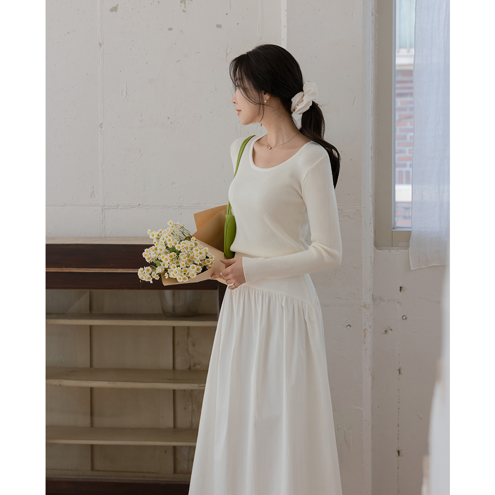 基本 U领 条绒 针织衫