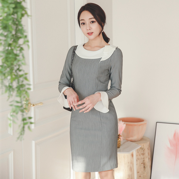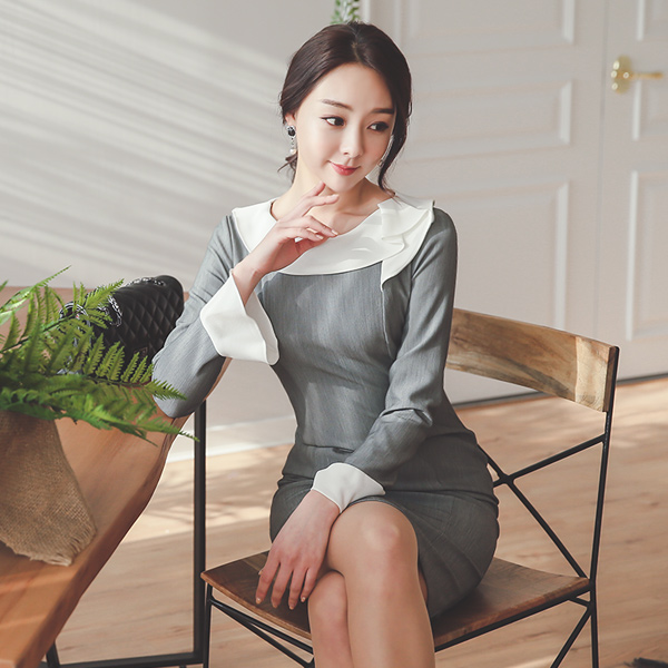 自由潜水袖口皱褶领连衣裙