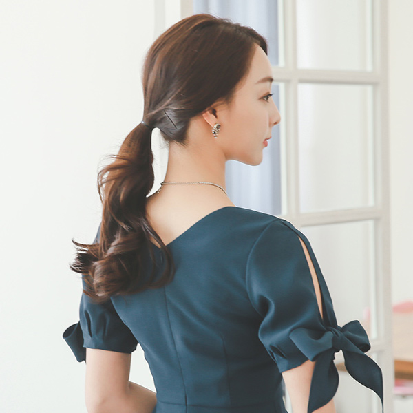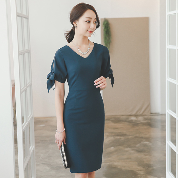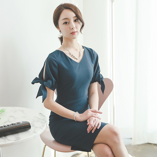 狭长丝带袖口V字母连衣衣裙