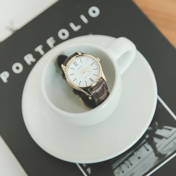 Casio咖啡色牛皮手表