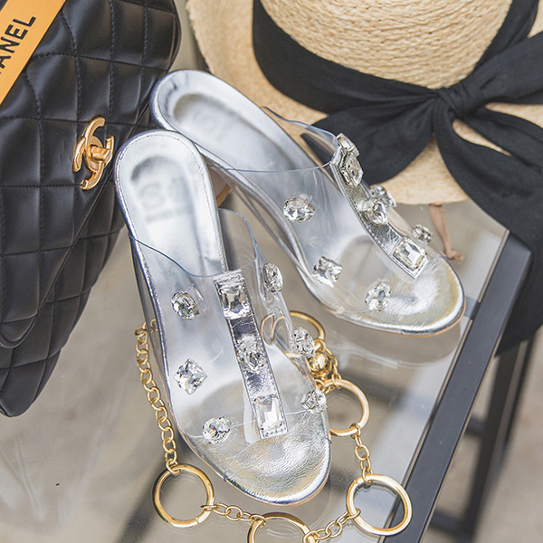 立方关键点透明骡子拖鞋