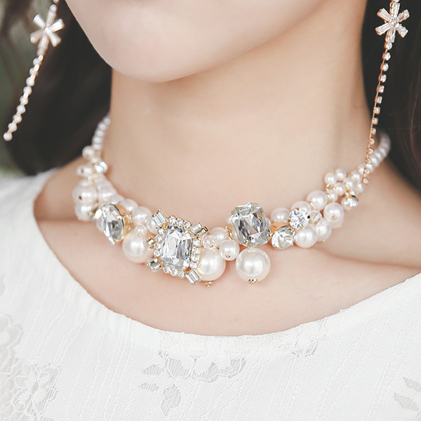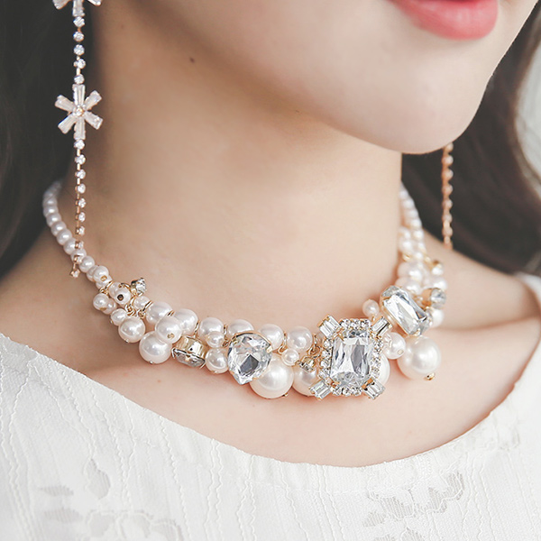 方钻石珍珠项链
