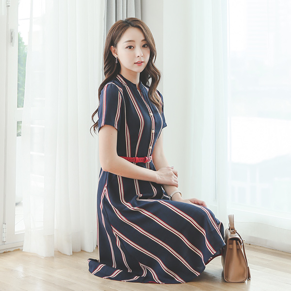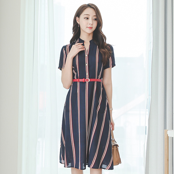Lauren线条衬衫波浪群/喇叭裙连衣裙