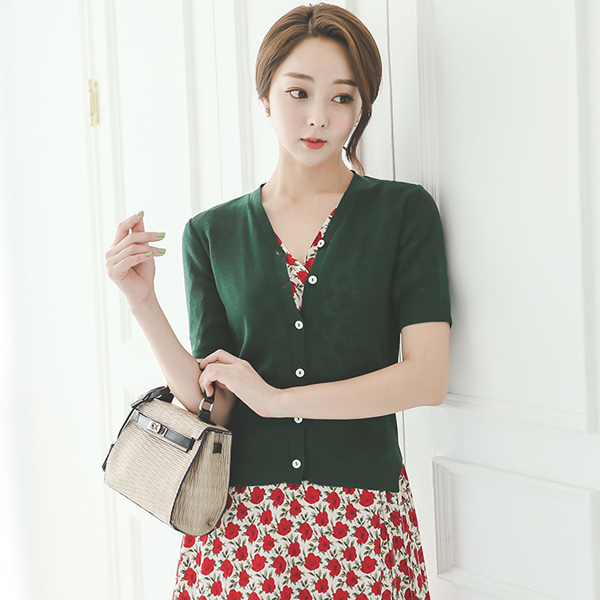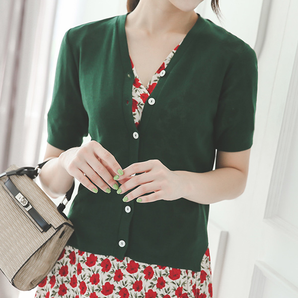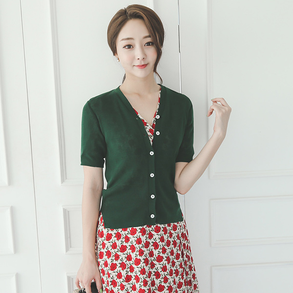 简单V字领开衫针织衫
