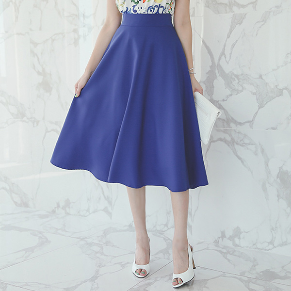 面部彩色高腰Midi波浪组/喇叭裙裙子