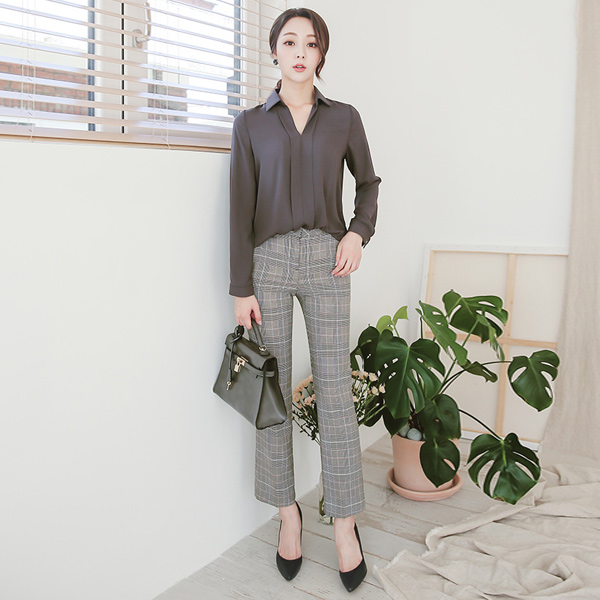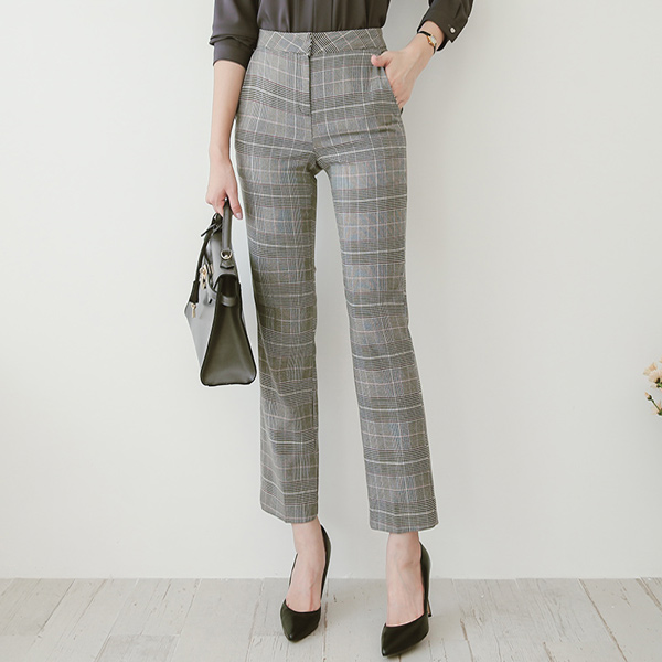 Glen check Tongsikunaru宽松长裤短裤