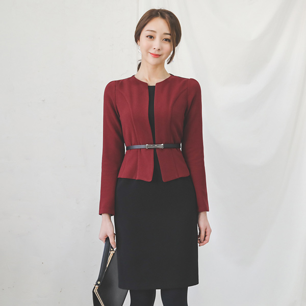 着色层圆领连衣裙