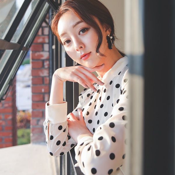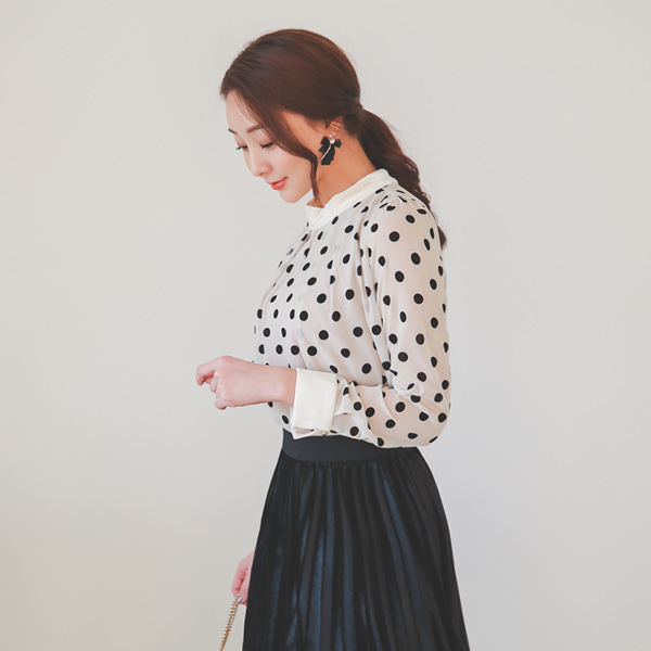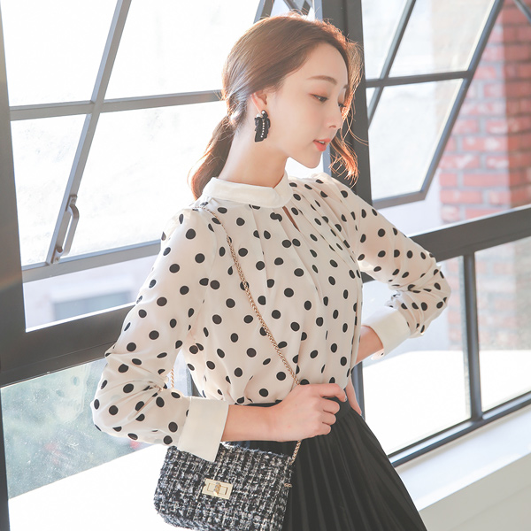 丝绒圆点图案女女衬衫