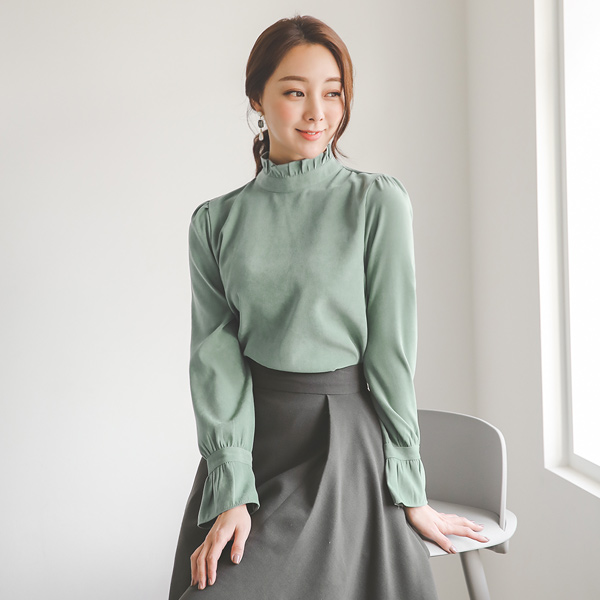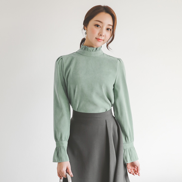 浪漫 荷叶边领&袖口 翻毛皮 罩衫