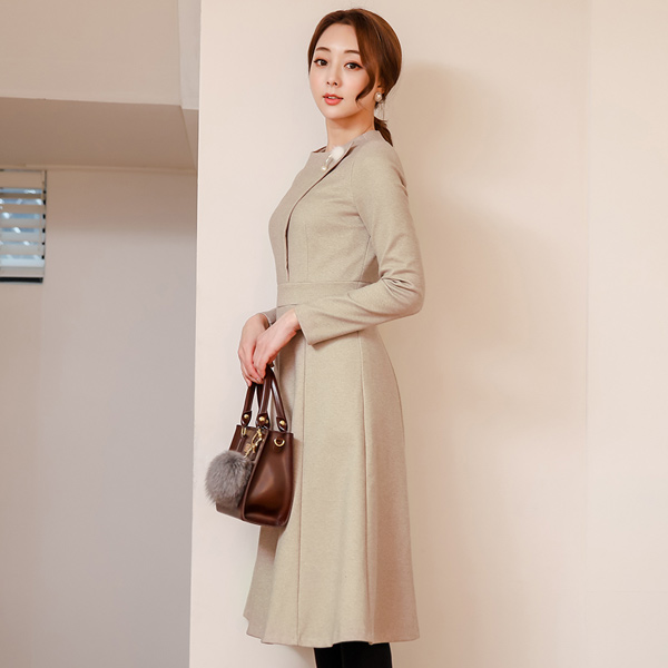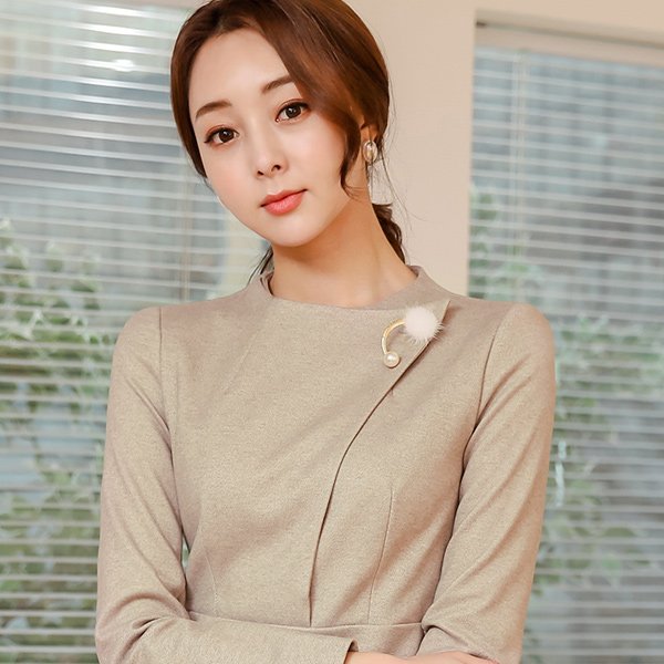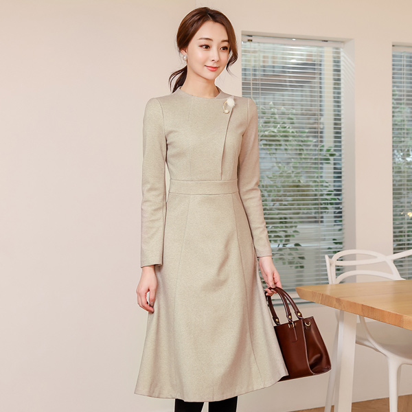水貂胸针绒绒波浪组/喇叭裙羊毛连衣裙