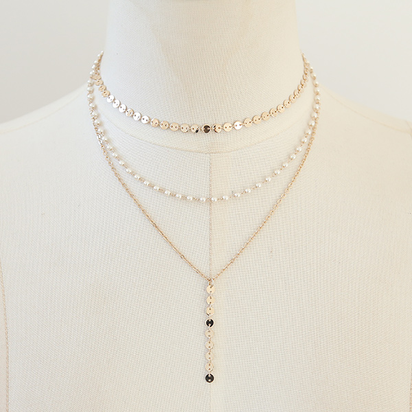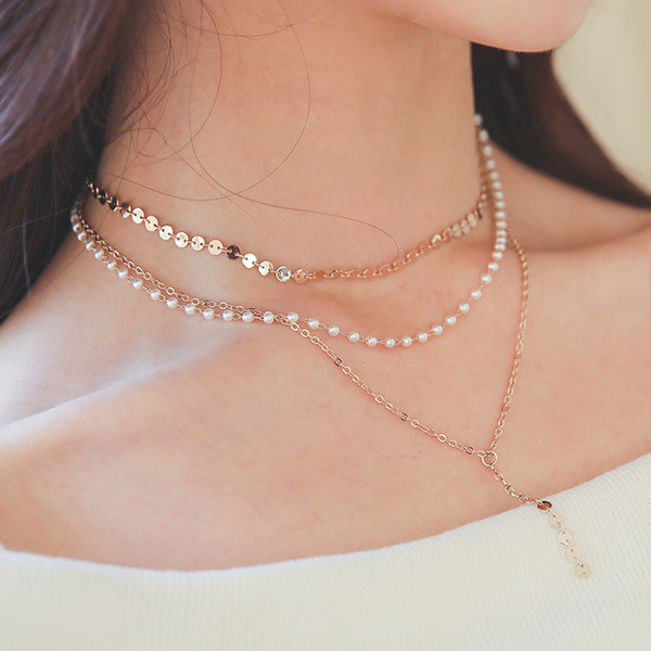 珍珠金色颈链分层项链