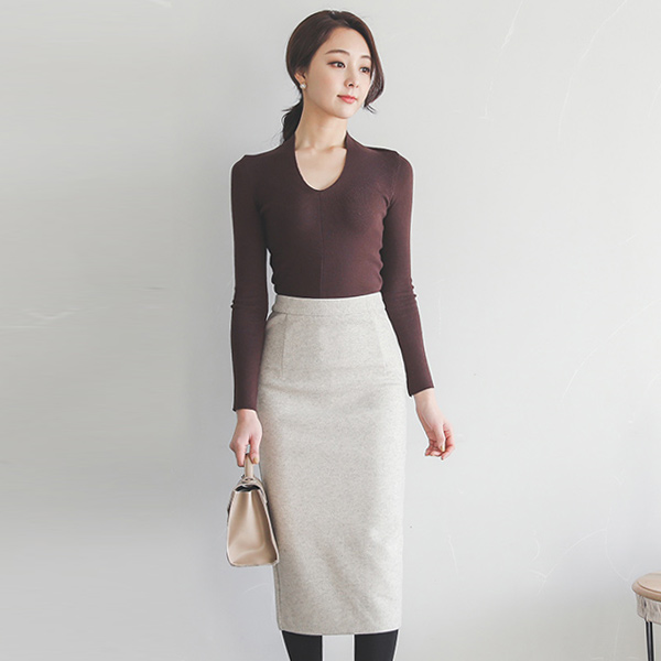 最少柔丝羊毛弹力中长款裙