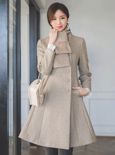 环保(eco)毛围巾套装单扣A字形羊毛大衣
