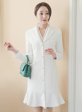 单个珍珠扣喇叭长款呢子大衣