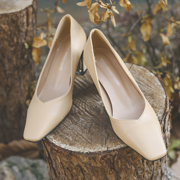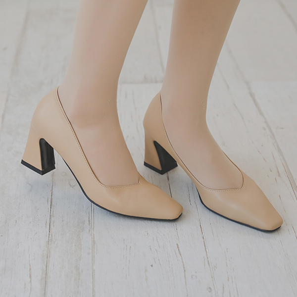 独特方形厚底中跟鞋