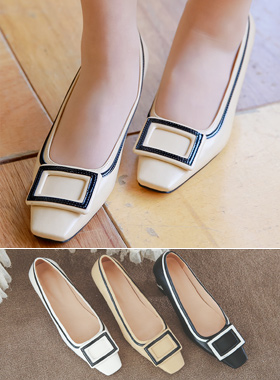 摩登 方形 配色 浅口式高跟鞋