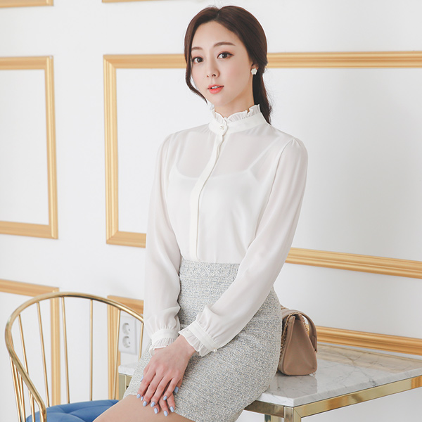 基本 荷叶边领 隐藏 罩衫
