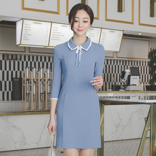 珍珠蝴蝶结 胸针 配色领子 连衣裙