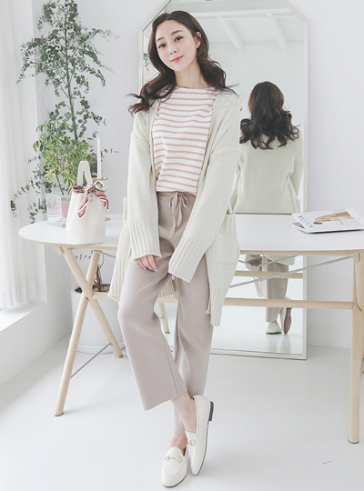 粗罗纹布后开叉八字纹长款开衫