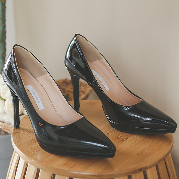 漆皮鞋垫前跟尖头高跟鞋