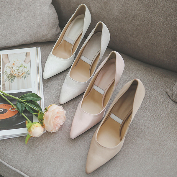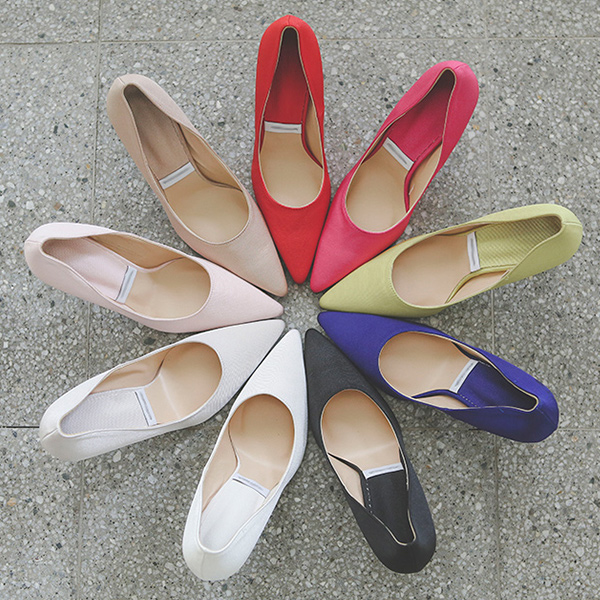 绸缎 条绒 鲜明 尖头高跟鞋