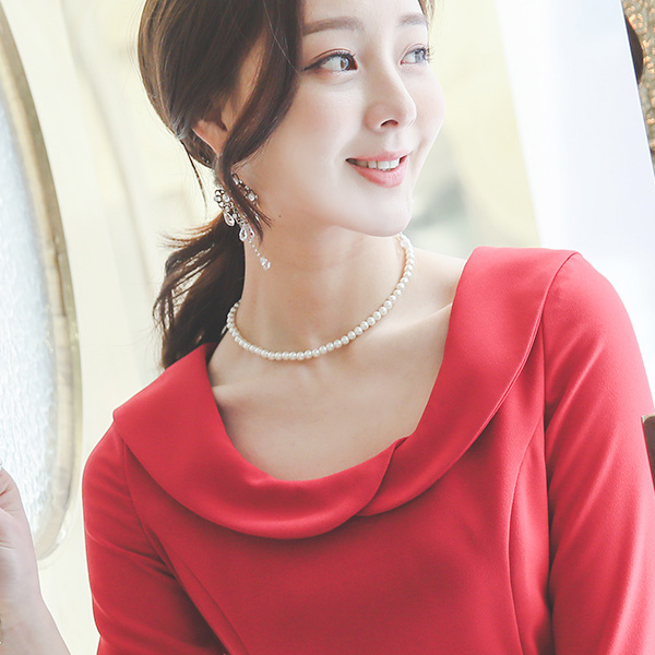 淑女 平领 侧纽 荷叶边 连衣裙