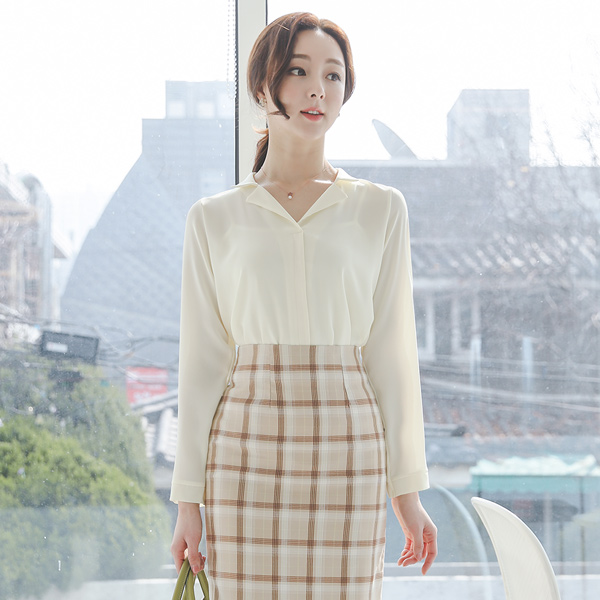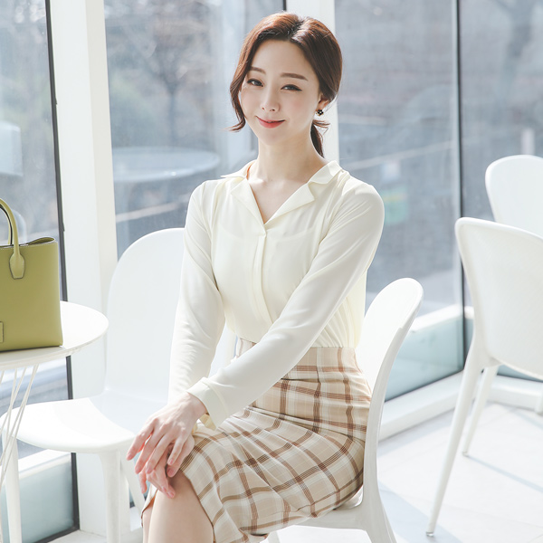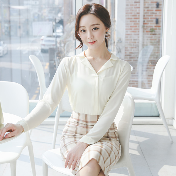 领子衬衫 V字领 细褶 罩衫