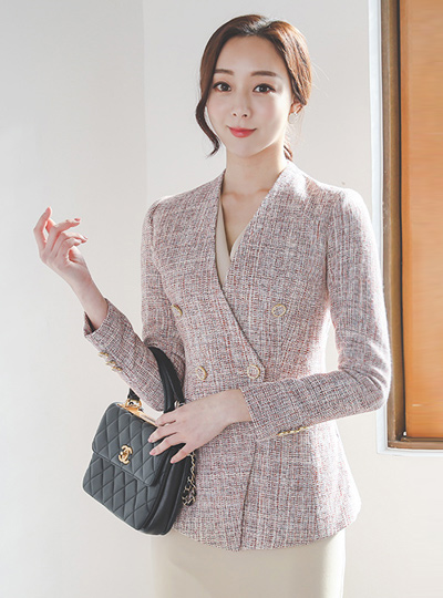 Coco 无领 黄金环 棉 粗呢 夹克