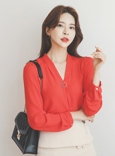 短上衣 黄金环 V字领 褶皱 罩衫