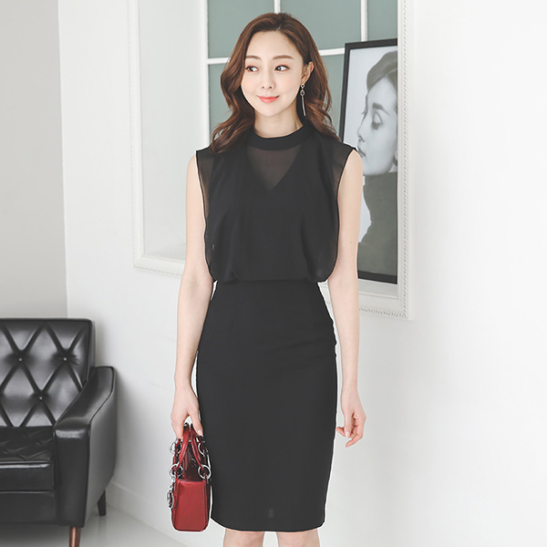 时髦的雪纺上衣颈链领连衣裙(无袖)
