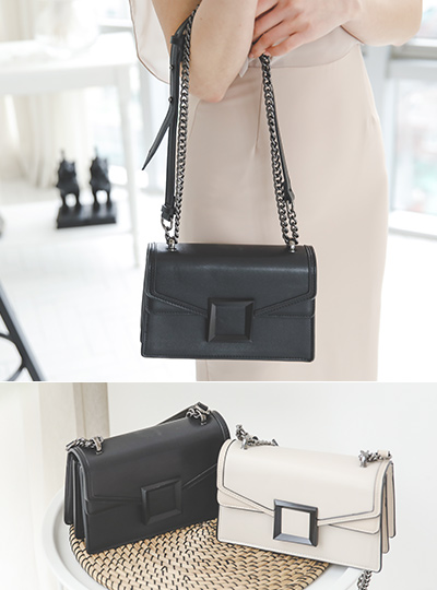 黑色方形链条摩登包