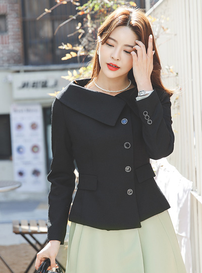 淑女 船形领 侧纽扣 喇叭 连衣裙