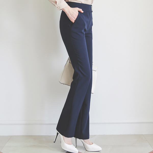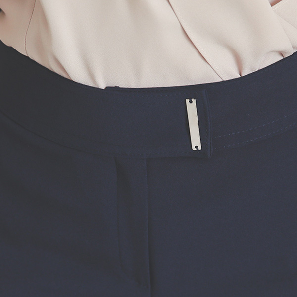 腰头银色条修身弹力 一字型宽松长裤