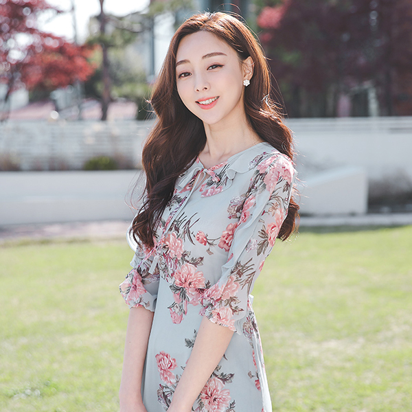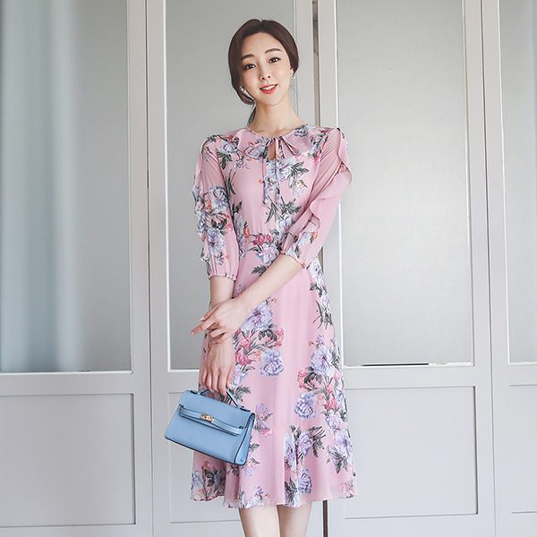 可爱 雏菊 平领 时髦的 雪纺 连衣裙