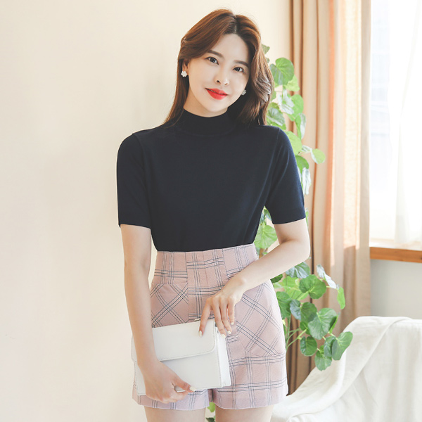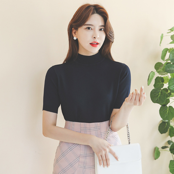 凉爽 5分袖 半高领 针织t恤