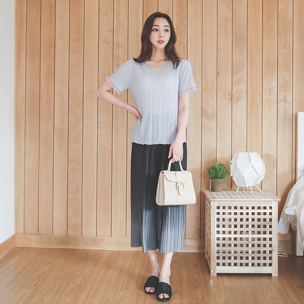 荷叶边线条 去皱纹 褶边 半袖 雪纺衫上衣