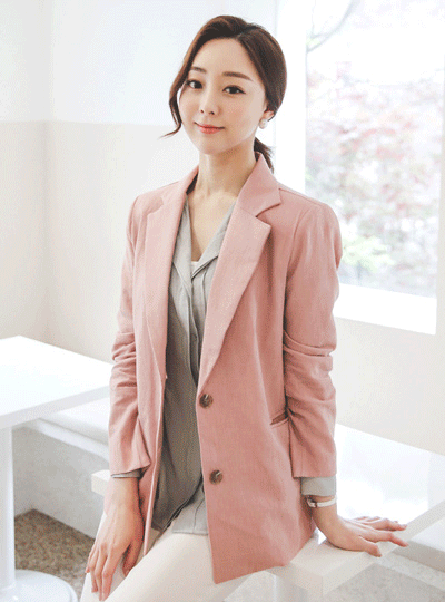 基本 修身 滚边口袋 亚麻 夹克