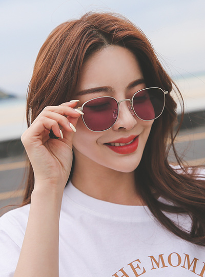 Pink 唇彩银色框太阳镜/墨镜