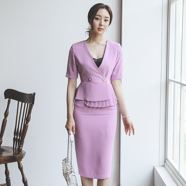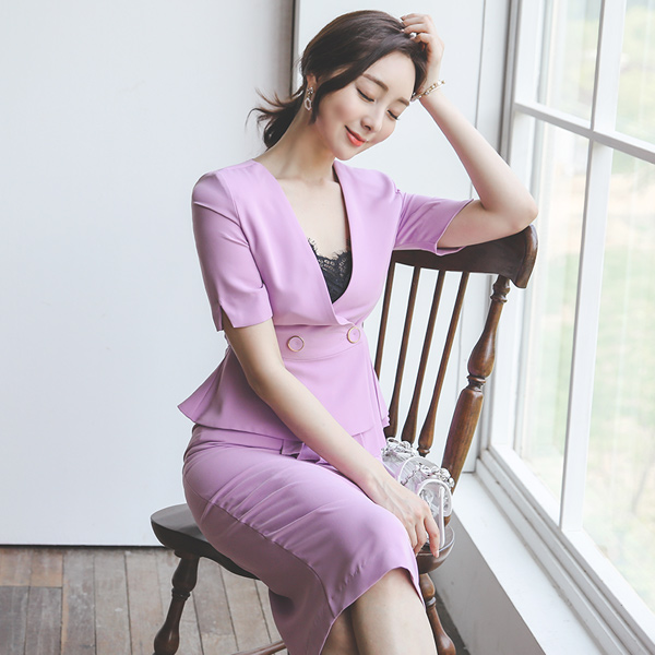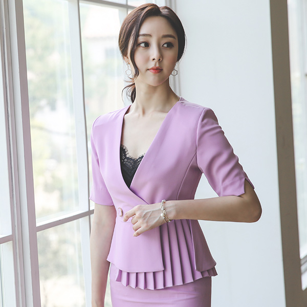 不规则 褶边 裹身 风格 双排扣 两件套套装