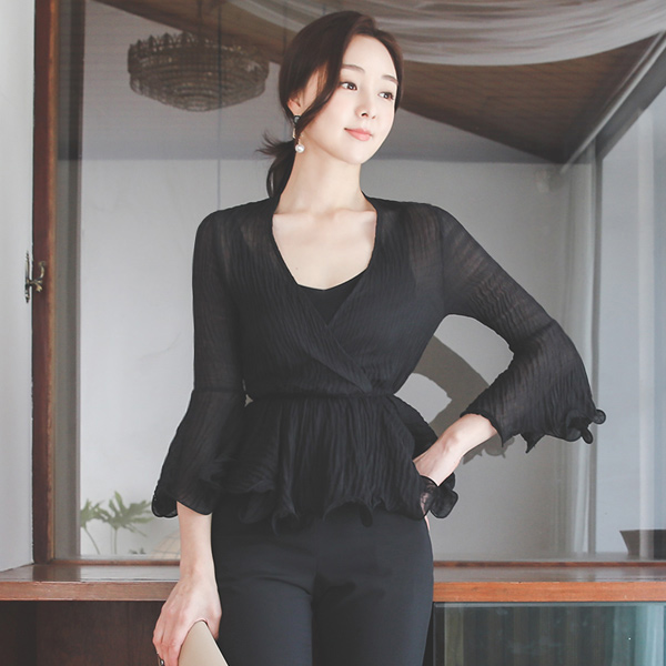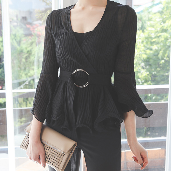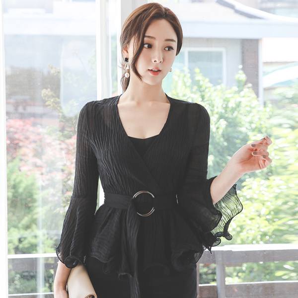 银环 束带 荷叶 裹身雪纺衫