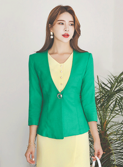 亚麻 棉 无领 珍珠 胸针 夹克