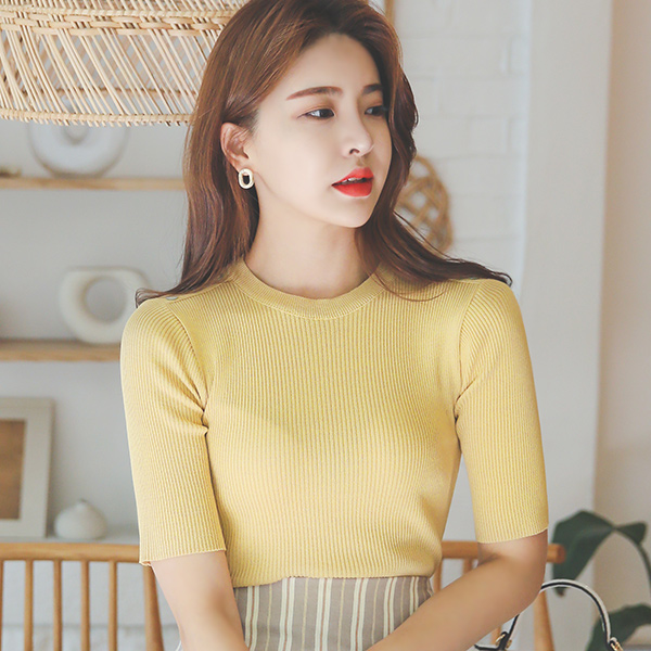 螺钿纽扣 凉爽 条绒 圆领 针织衫